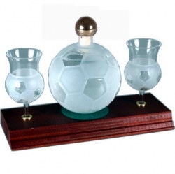 Englbert - Sada Fotbalový míč 0,35l + dva pohárky na dřevěné podložce.
